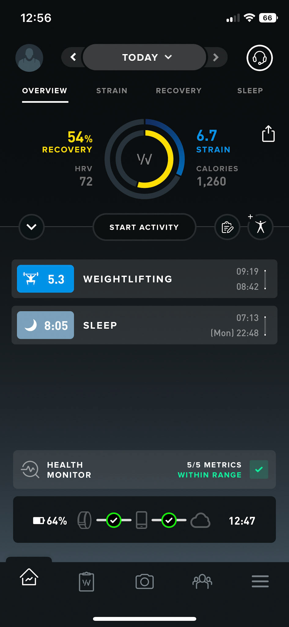 One of the main metrics that WHOOP 4.0 focuses on is Strain. Various factors feed into this score, it's heavily impacted by recording an activity using the app. This could be something like a cycling session or a run. As strain builds up your recovery needs are increased, if you manage to keep your strain low then you should set yourself up well for the next day. It's not an exact science, it's an indication that allows you to make a more informed decision around your own training goals and needs.
